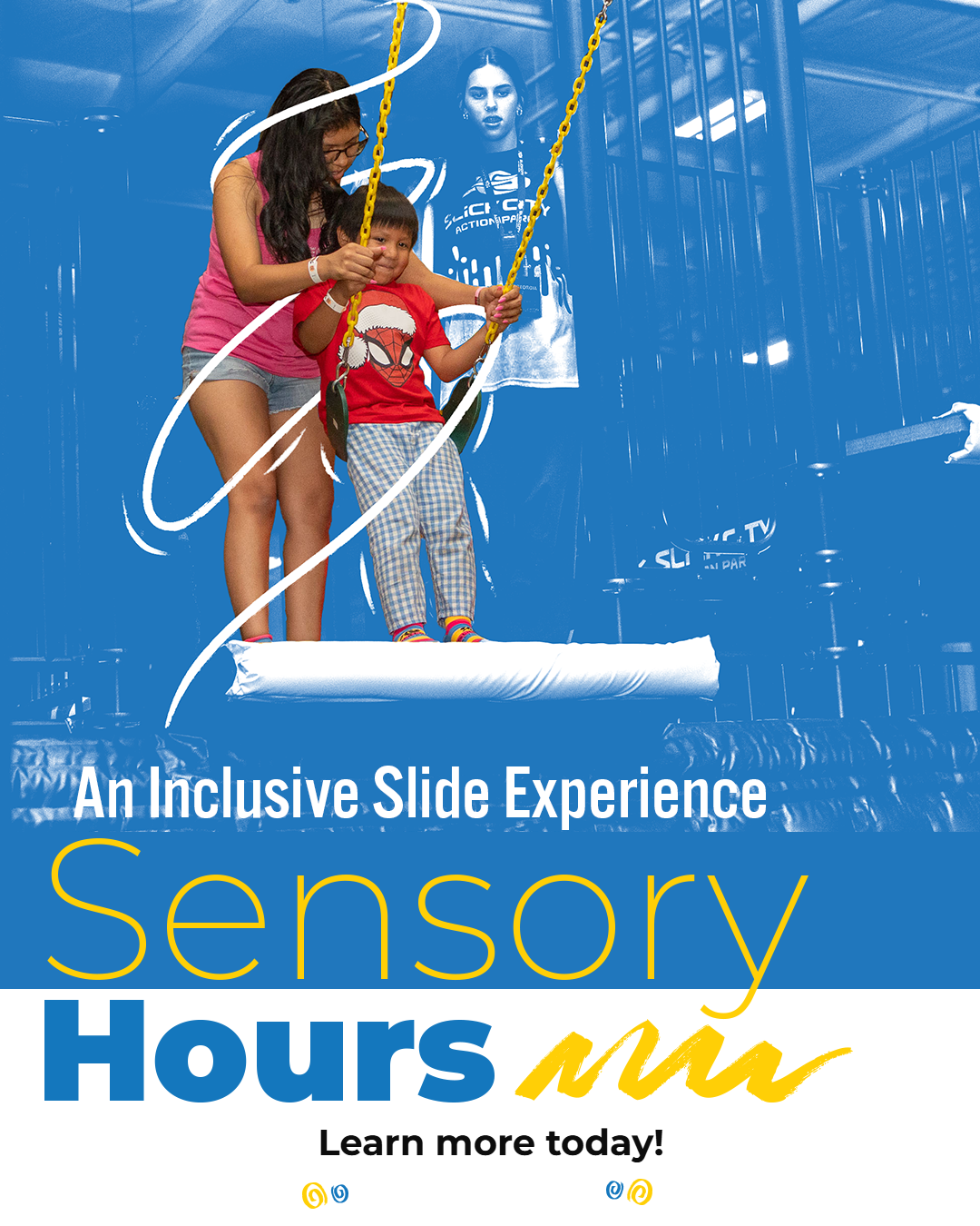 Discover the thrill in a calm environment during Sensory Hours. Enjoy a 90-minute sensory friendly session for those who require a less intense environment. Tickets are $19.99