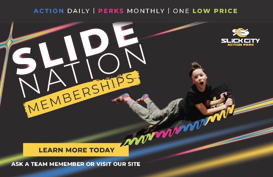 Founding member discount! For as low as $26.99 per person, join Slide Nation today and get action daily and perks monthly — all for one low price.