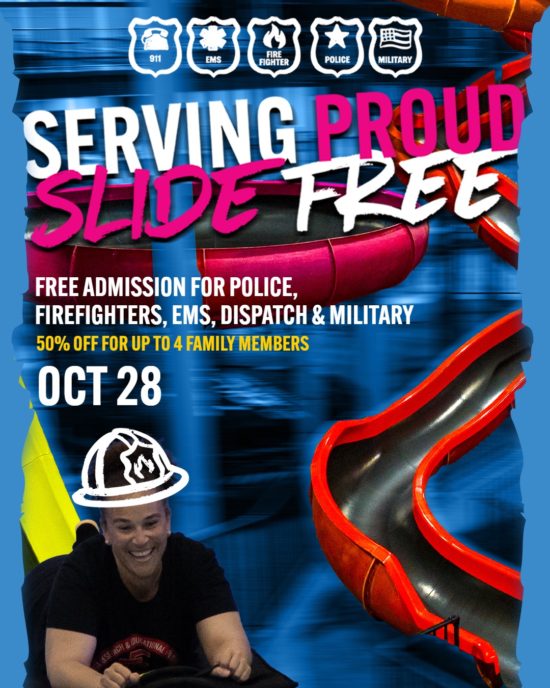 Come enjoy a day of fun, slides, and appreciation with your family. You’ve earned it!